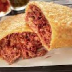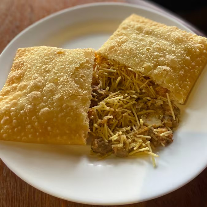 Pastel com recheio de carne.