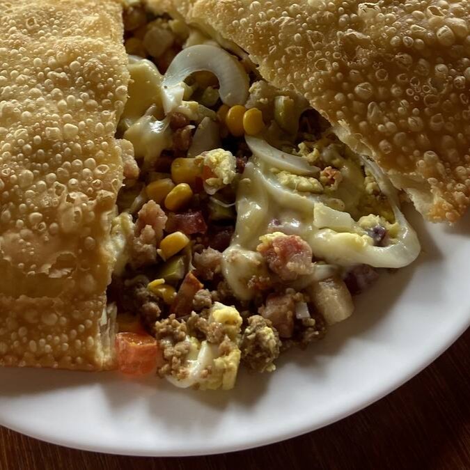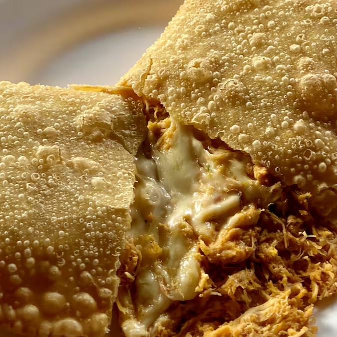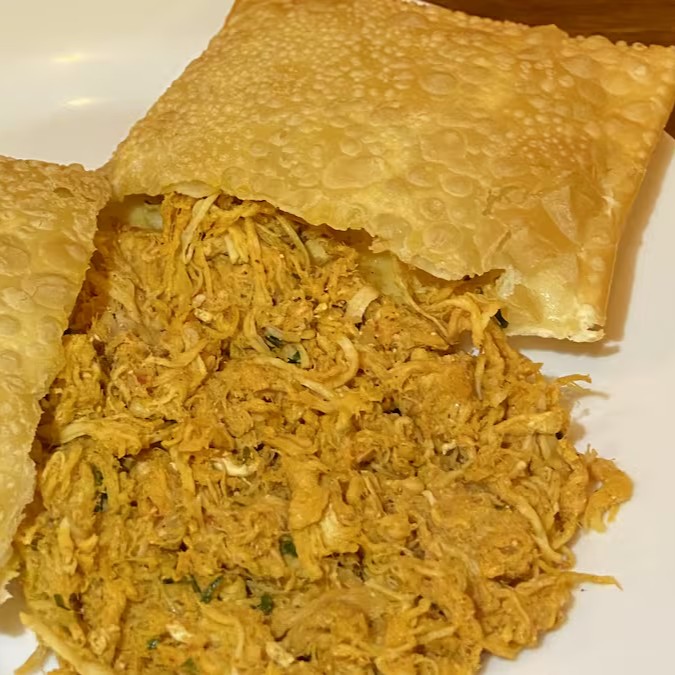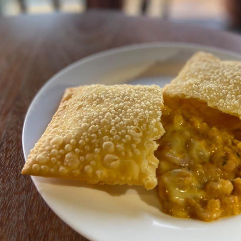 Pastel com recheio de frango e Queijo.