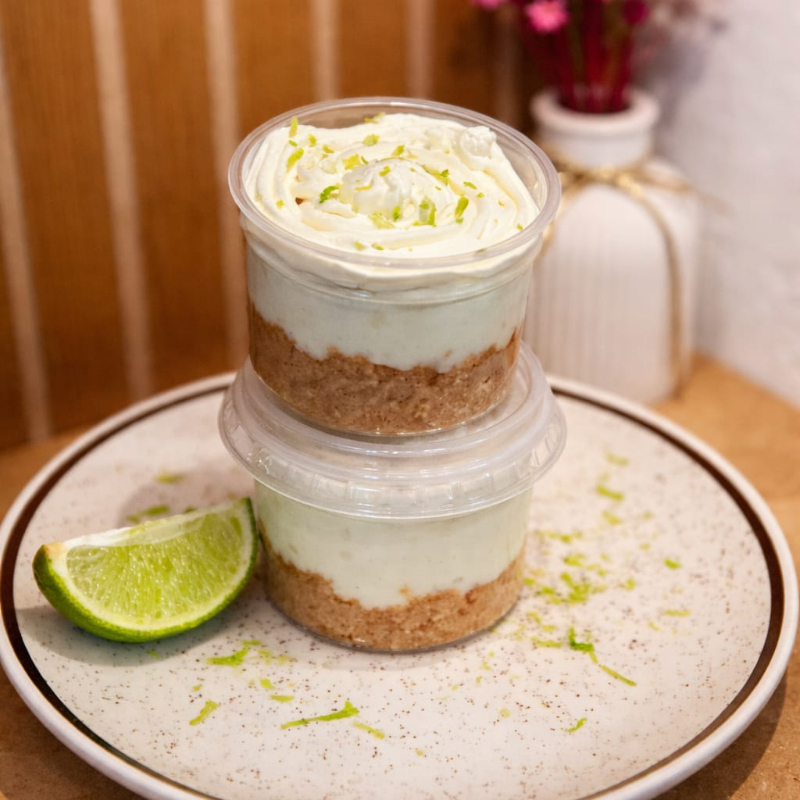 Torta de limão cremosa com base crocante, tudo em um pote prático e delicioso.