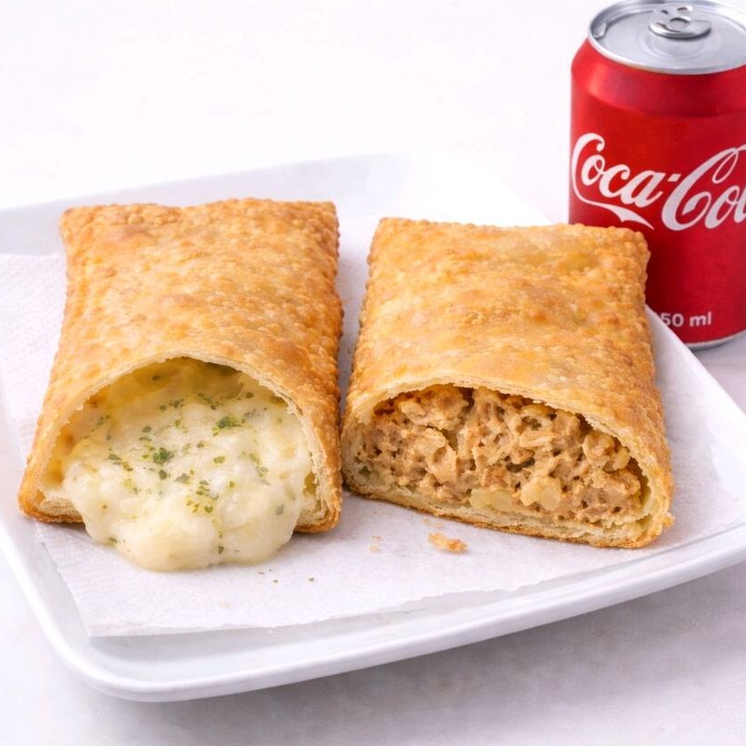 1 Pastel De Queijo + 1 Pastel De Carne + 1 Coca Cola Lata