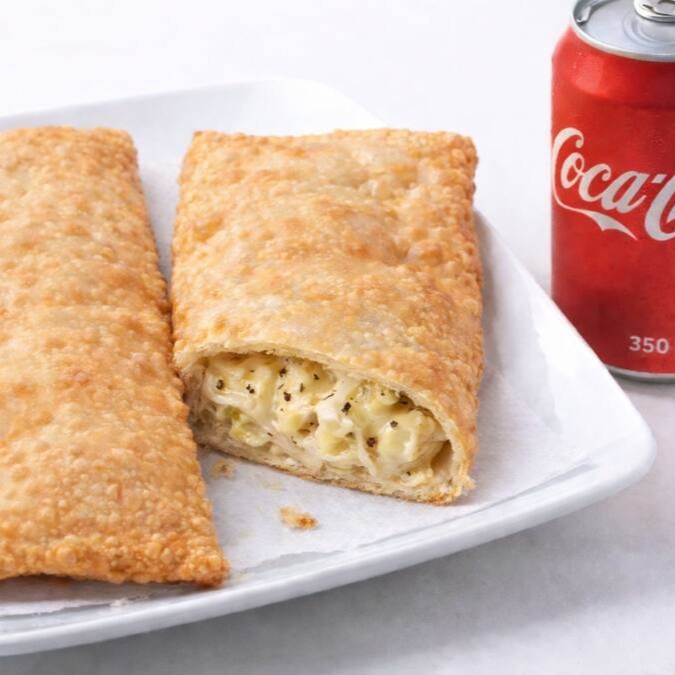 1 pastel de queijo + 1 pastel de frango + 1 Coca Cola lata