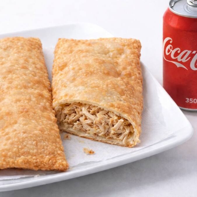 2 Pastéis de frango Simples + 1 Lata de Coca Cola