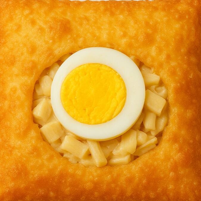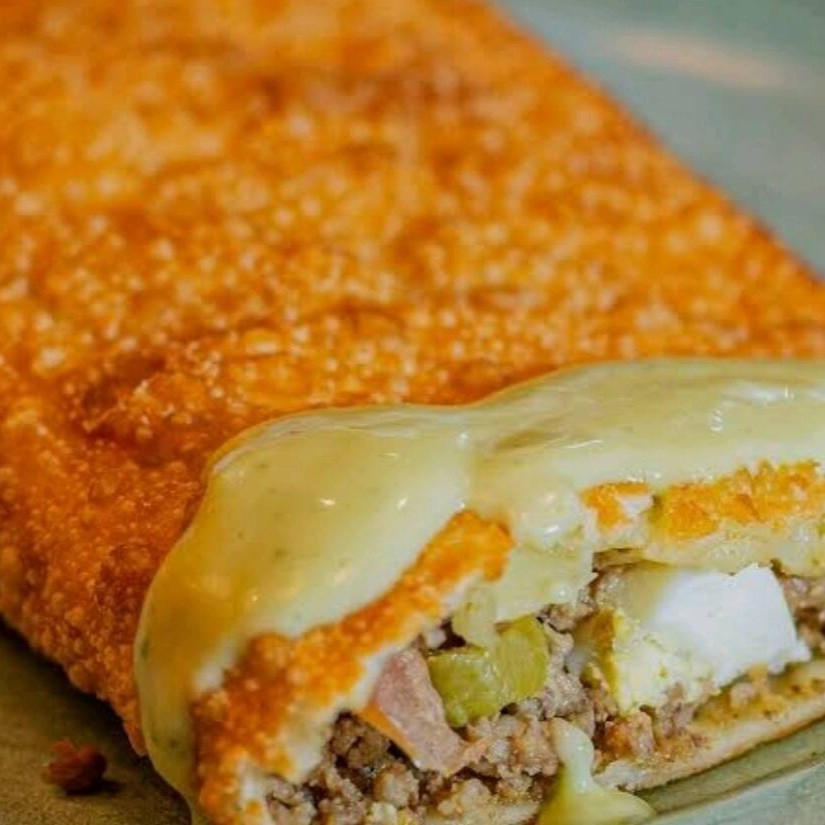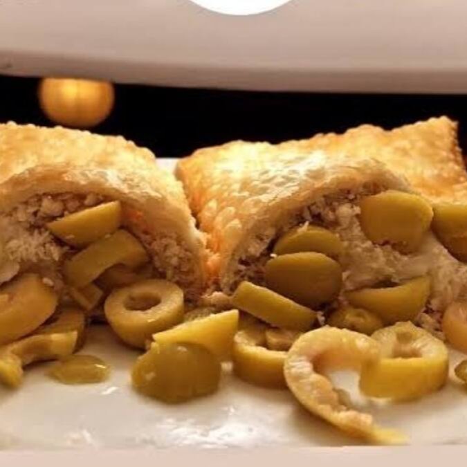 Carne, azeitona, palmito, ovo, requeijão cremoso, queijo mussarela.