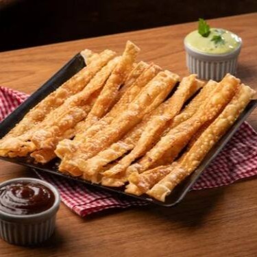 Tirinhas de massa de pastel crocantes.