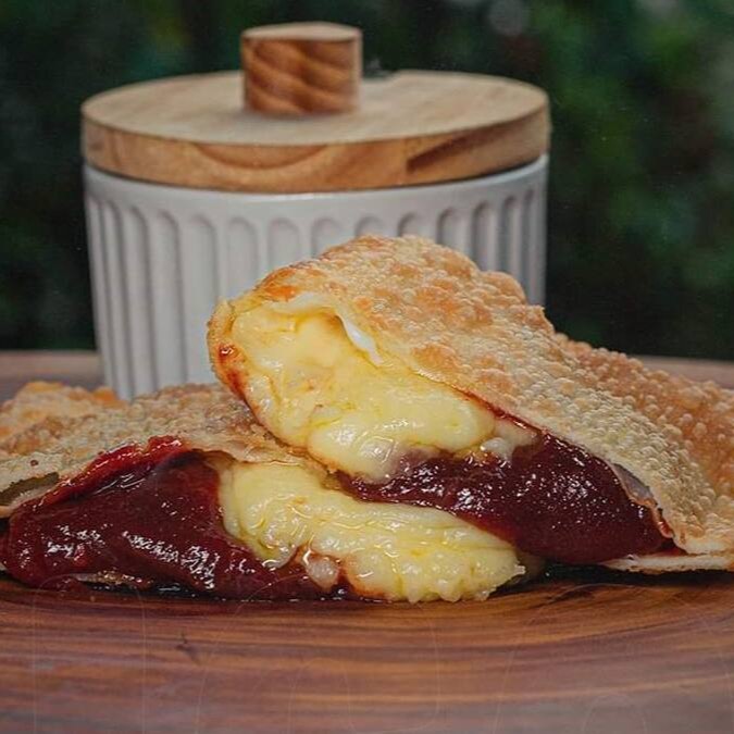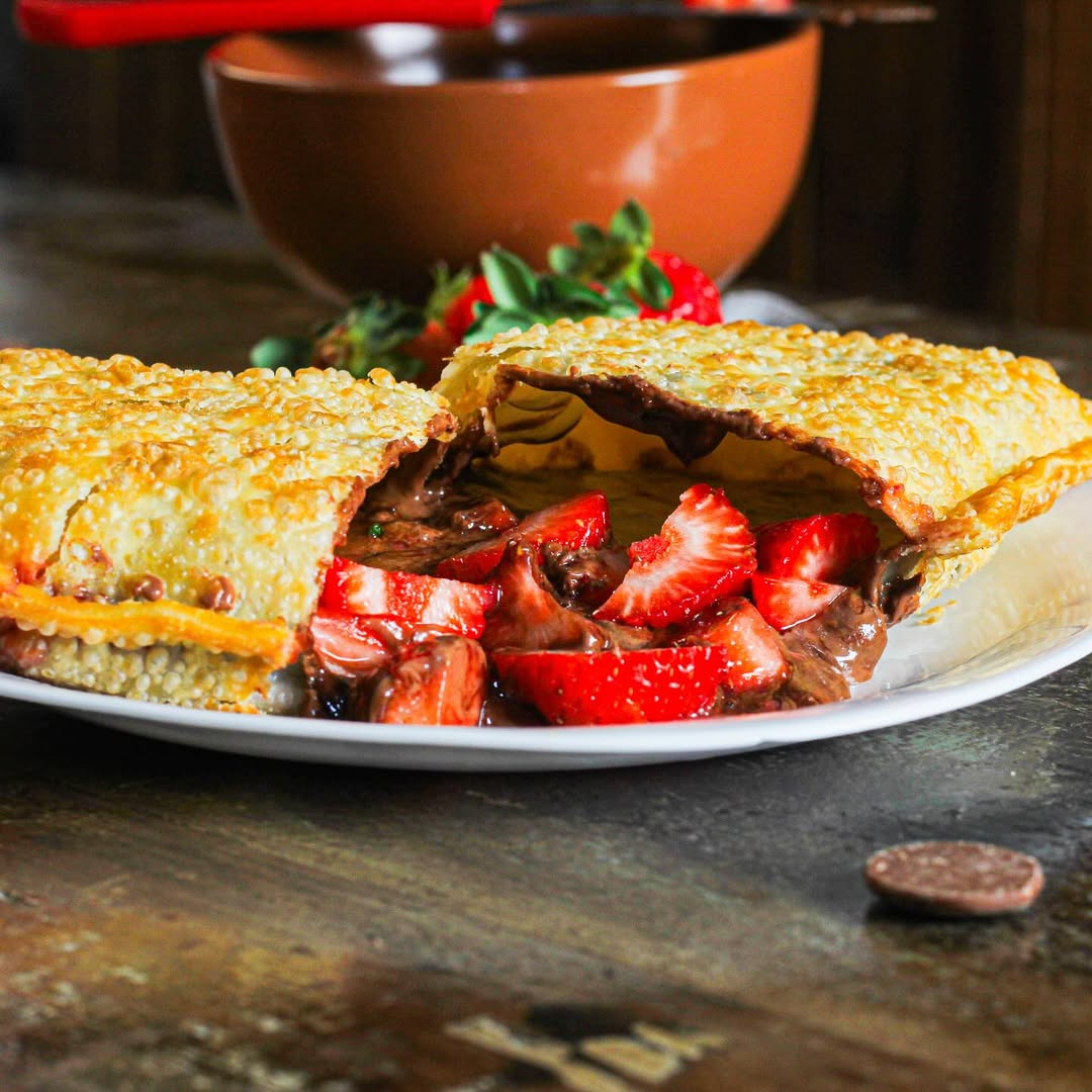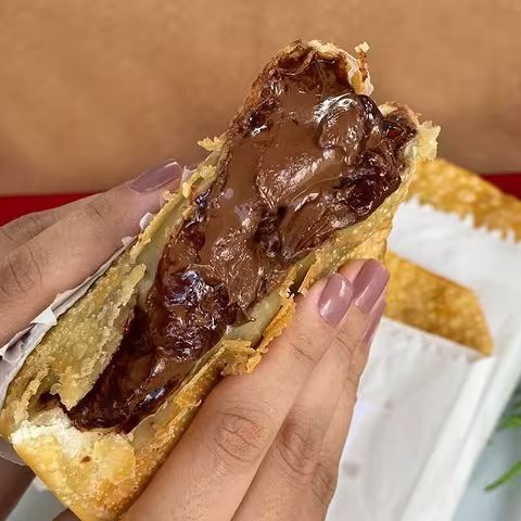 O autêntico creme de avelã com cacau envolto em uma massa artesanal leve e crocante. Frito na hora para que o recheio fique em uma consistência fluida e aveludada, proporcionando uma experiência de sabor intensa e sofisticada.A combinação perfeita de contrastes: o sabor vibrante e levemente ácido de morangos frescos selecionados com a cremosidade irresistível do nosso brigadeiro artesanal (ou chocolate ao leite). Tudo isso envolto em uma massa dourada, leve e extremamente crocante. Uma verdadeira explosão de sabores!