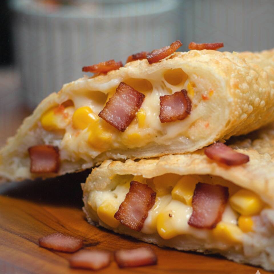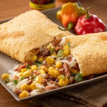 Pastel Queijo, Milho e Bacon A combinação que nunca falha! Muito queijo muçarela derretido, a doçura do milho selecionado e a crocância do bacon em cubos. Um recheio suculento e cheio de sabor dentro da nossa massa artesanal sempre sequinha