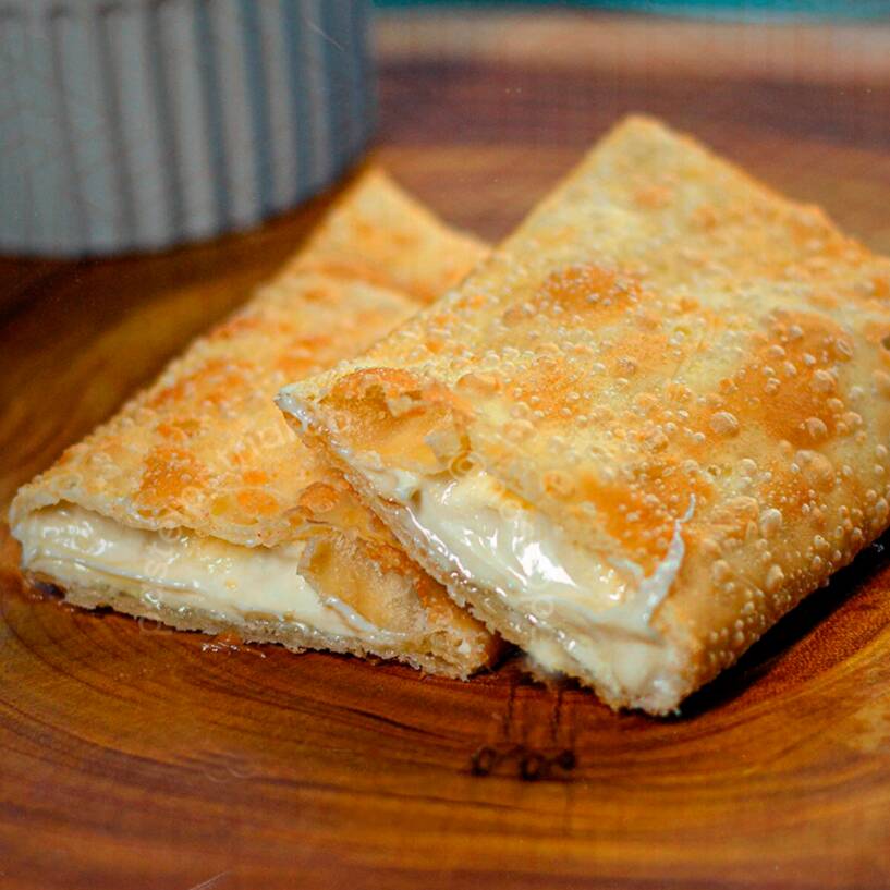 Para quem não sabe escolher um só: o melhor dos dois mundos! Muito brigadeiro e muito coco em um pastel douradinho e crocante. Quentinho, derrete na boca e é o queridinho dos nossos clientes.