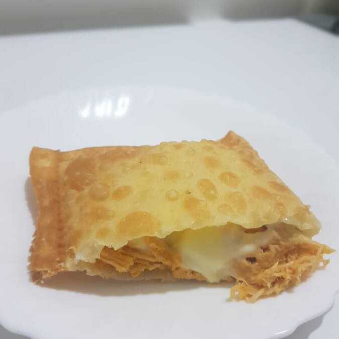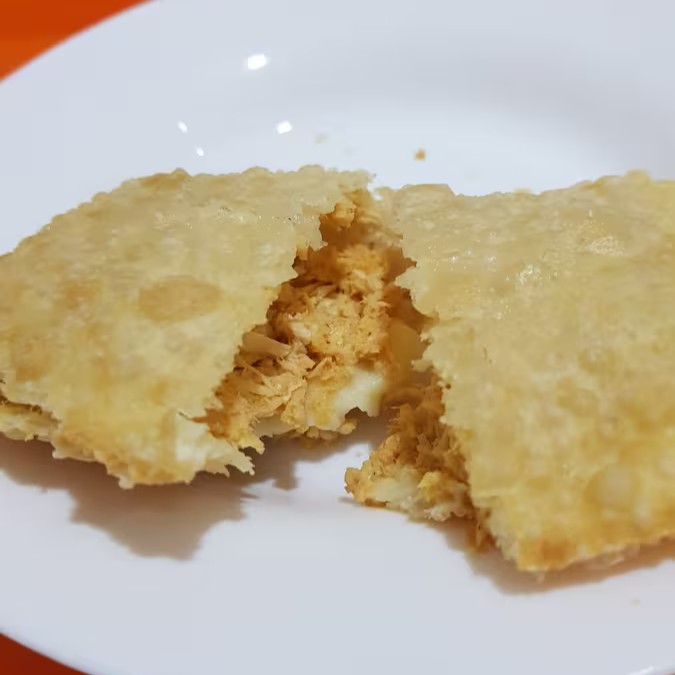 Massa crocante e sequinha, recheada com peito de frango desfiado.