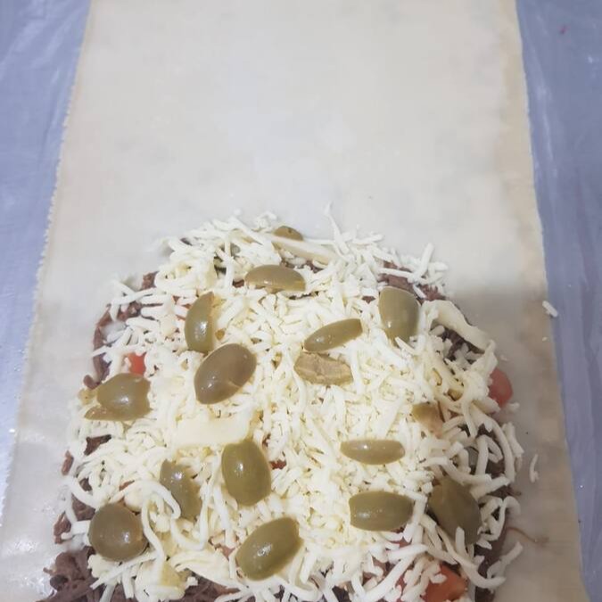 Massa sequinha e crocante com recheio de palmito milho azeitona e brócolis