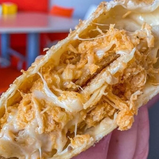 Massa fresquinha e crocante, recheada com carne moída de suprema qualidade, cozida suavemente, envolvidos por queijos.