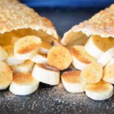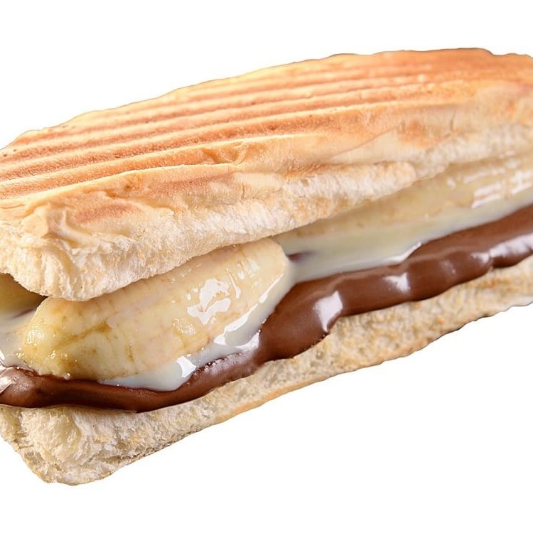 Pão 20cm, banana, chocolate branco, batata palha