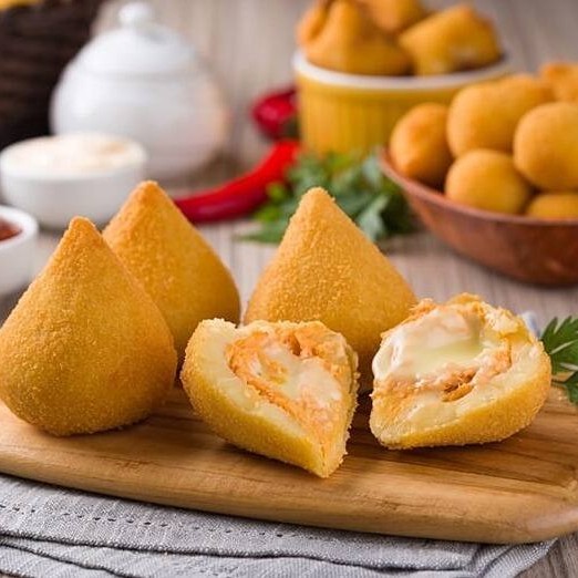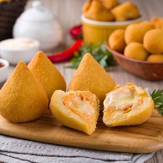 Temos variações de coxinha de frango com requeijão, bolinhas de queijo e travesseirinhos de carne, todos muito crocantes, sequinhos e mega temperados.