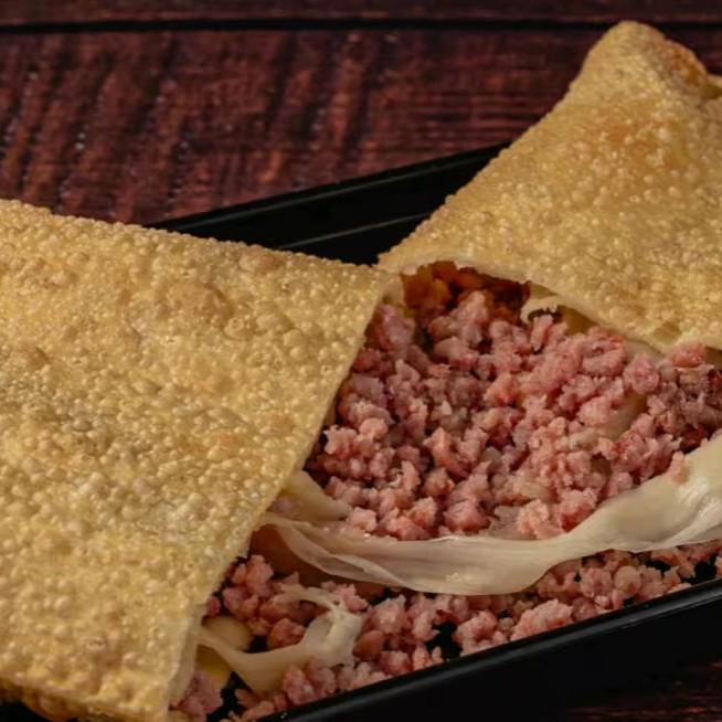 Massa crocante recheada com carne temperada e queijo derretido. Feito na hora e agora com preço especial!