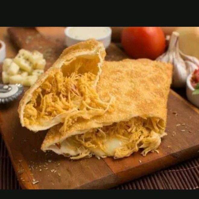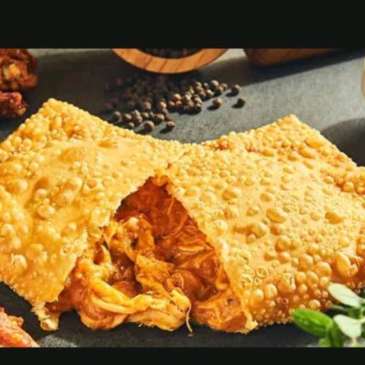 Recheado com frango desfiado, temperado, envolto em uma massa crocante, uma combinação perfeita de sabor e textura "(Frito na hora)"