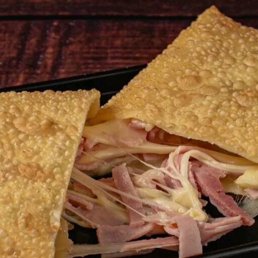 Saboroso pastel Com massa sequinha e crocante e com muito recheio de queijo derretido e Presunto. O sabor daquela combinação clássica que nunca sai de moda.