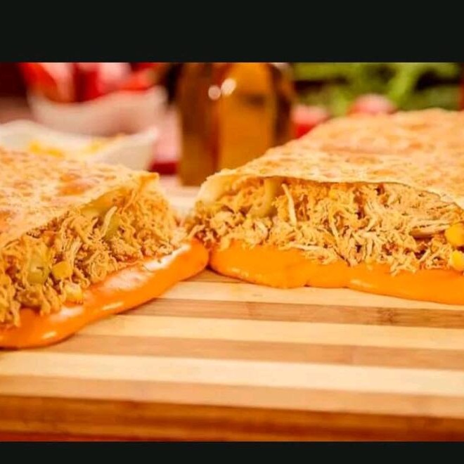 Pastel recheado com frango desfiado, temperado ,envolto em uma massa crocante, uma combinação perfeita de sabor e textura.