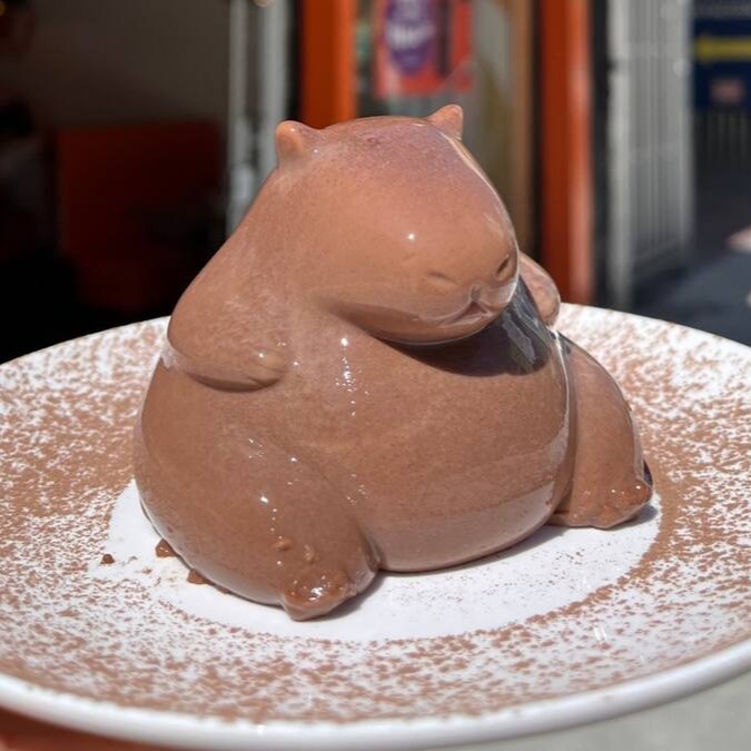 Pastel em formato de capivara mais famoso de Curitiba. Você vai amar! Recheado de creme de avelã com morangos.