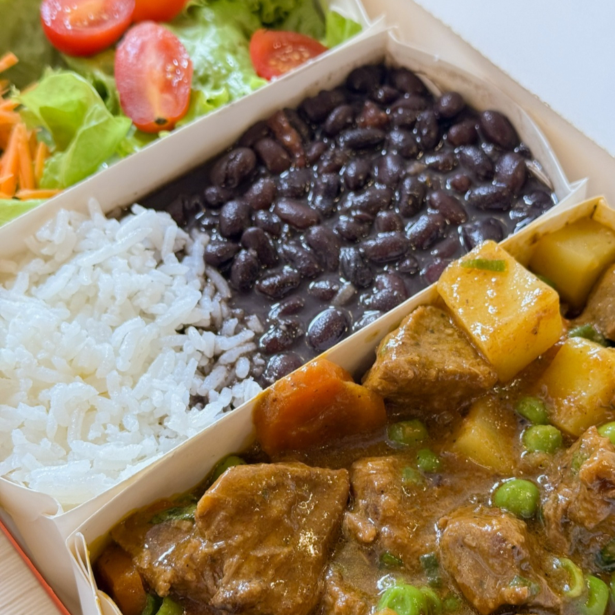 Uma deliciosa carne de panela com um molho especial. Acompanha um molho com batata e cenoura, arroz branco soltinho, feijão preto, salada verde com tomate cereja e cenoura ralada. Uma combinação perfeita.