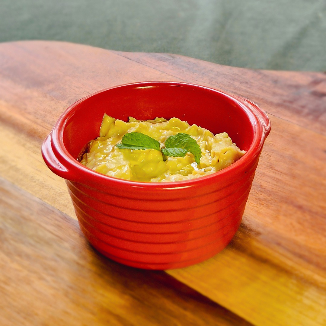 Grão de bico assado e moído com óleo de gergelim e temperos