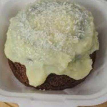 Massa de chocolate 50% com calda cremosa de brigadeiro branco finalizado com coco