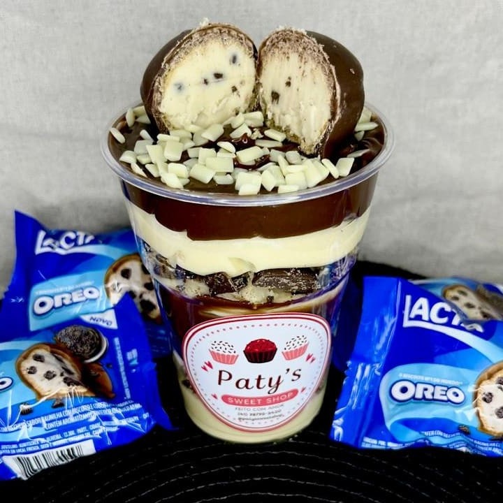 Camadas irresistíveis de brigadeiro cremoso de chocolate branco e brigadeiro 50% cacau, combinadas com pedaços do delicioso bombom de Oreo. Finalizado com cobertura de chocolate, granule de chocolate branco e bombom Oreo no topo Cremoso, intenso e feito com todo o carinho da Paty’s Sweet Shop