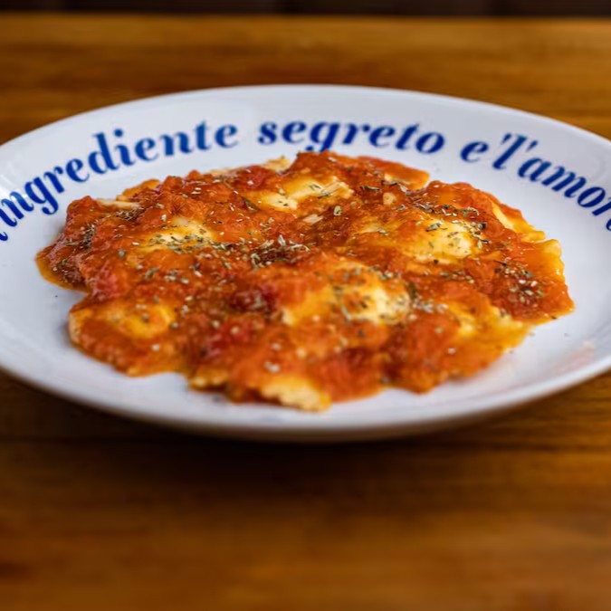 Ravioli de queijo de cabra com molho de tomates e orégano fresco