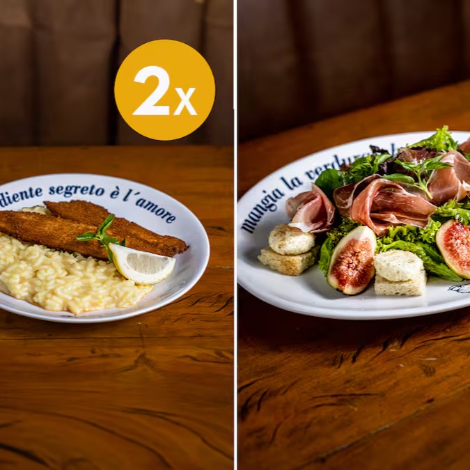 1 salada verde com prosciutto + 2 Saint Peter com risoto ao limone
