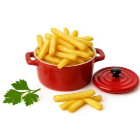Porção de batata frita crocante e sequinha, servida sempre quentinha e ideal para acompanhar seu Peixe Inglês em Santa Felicidade, Curitiba.