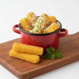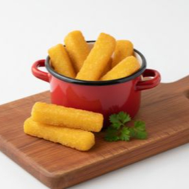Porção de polenta frita douradinha, crocante por fora e macia por dentro, perfeita para acompanhar seus Peixe Inglês em Santa Felicidade, Curitiba.