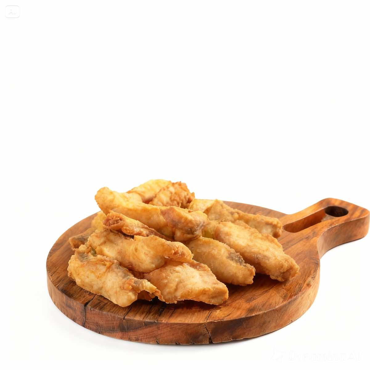 Suculentas iscas de tilápia empanadas na farinha de trigo, temperadas com o tempero especial do Peixe Inglês, crocantes por fora e macias por dentro.