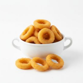 Anéis de cebola empanados e fritos, bem crocantes e saborosos, perfeitos para petiscar junto com seus Peixe Inglês em Santa Felicidade, Curitiba.