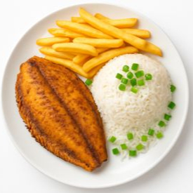 Filé de Tilápia Empanado – filé de tilápia suculento, empanado para ficar bem crocante e acompanhado de arroz branquinho com batatas fritas irresistíveis. Uma combinação clássica e completa, com muito sabor e textura em cada garfada no seu pedido de delivery.