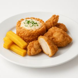 Suculentas iscas de tilápia empanada no trigo, acompanhada de batata crocante, com tempero especial do Peixe Inglês (350g)
