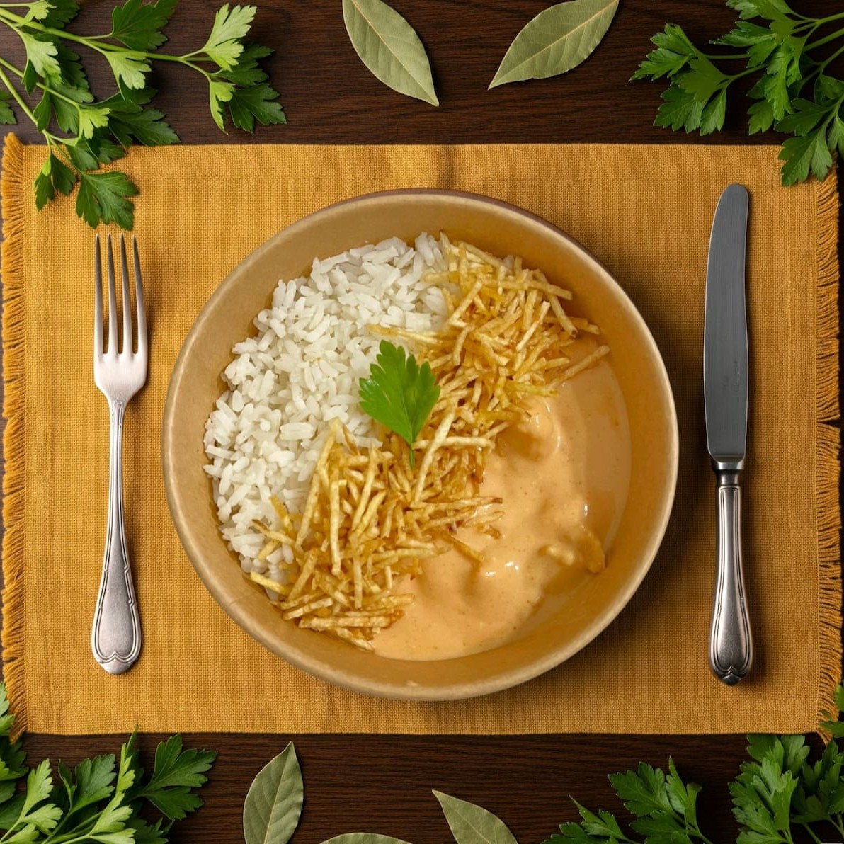 Frango no ponto, molho absurdamente cremoso e um sabor que conforta até em Dia difícil. Vem com arroz, batata palha e felicidade no pacote. Provou, sorriu. Repetiu? Normal. Porque quando é bom de verdade, não dá para resistir.