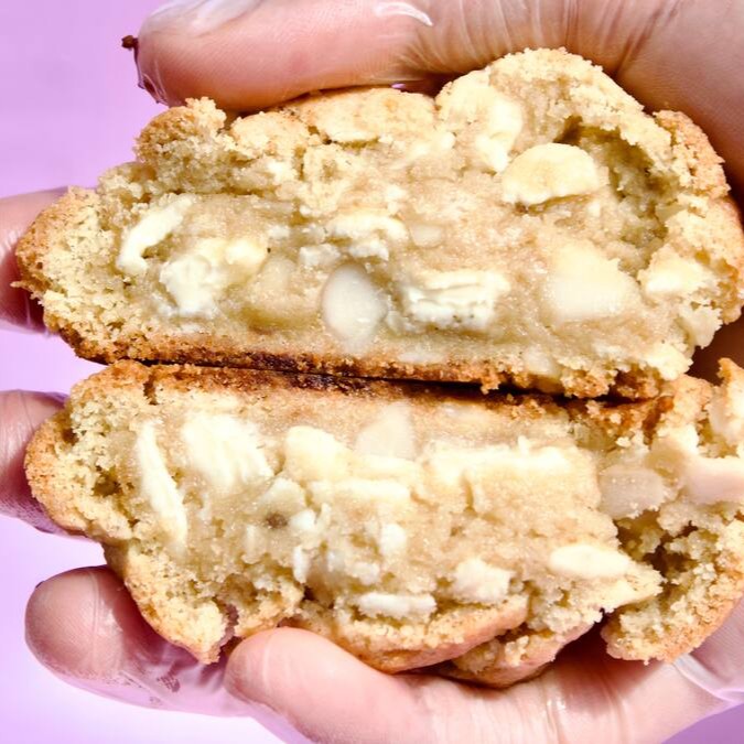 Saborosa massa tradicional com gotas de chocolate branco e pedaços de macadâmia. 120g (: