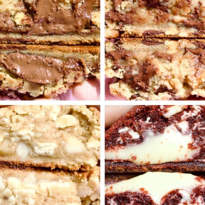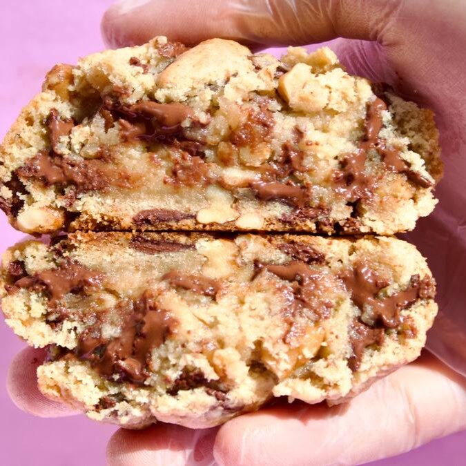 Cookie macio por dentro e crocante por fora, feito com gotas de chocolate meio amargo e chocolate branco. Recheado com creme artesanal de Lotus Biscoff (biscoito super crocante com sabor caramelizado e toque de canela). Seu cookie irá finalizado com um biscoito Lotus. :)