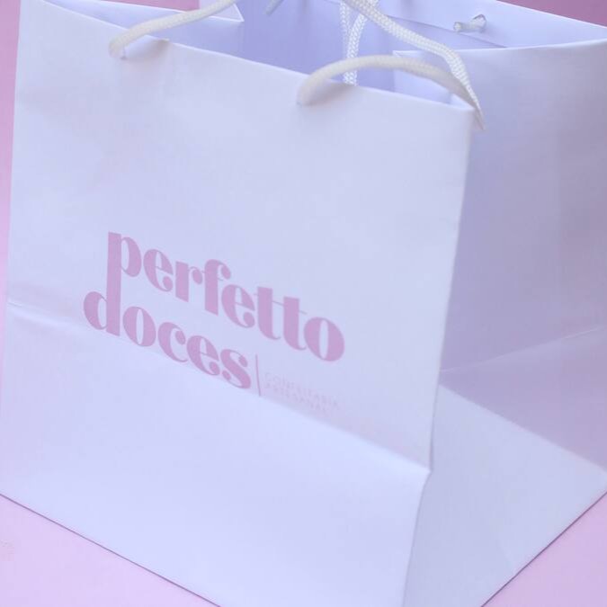 Sacola linda para presente, finalizada com laço em fita de cetim.