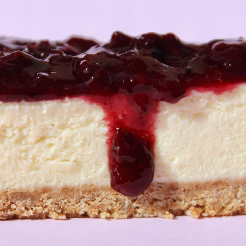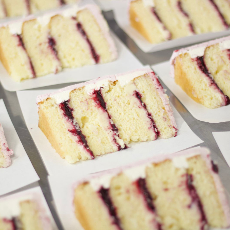Bolo de massa amanteigada bem molhadinha, recheado com brigadeiro de cream cheese e geleia artesanal de frutas vermelhas. Cobertura em buttercream saborizado com frutas vermelhas.