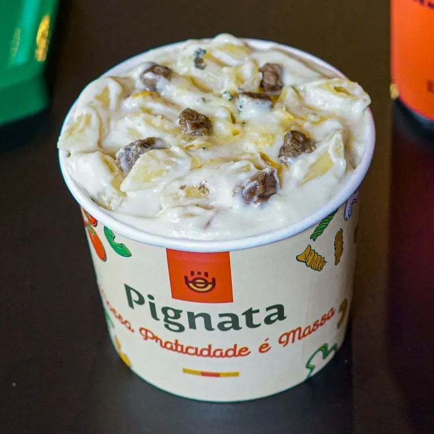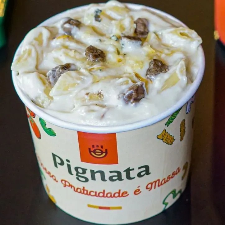 200g de massa Italiana a sua escolha, molho branco, creme de leite fresco, Mignon em cubos, mix de quatro queijos( parmesão, Mussarela, provolone e gorgonzola)