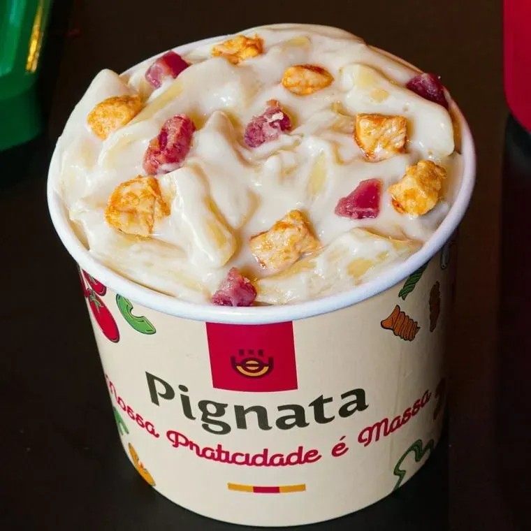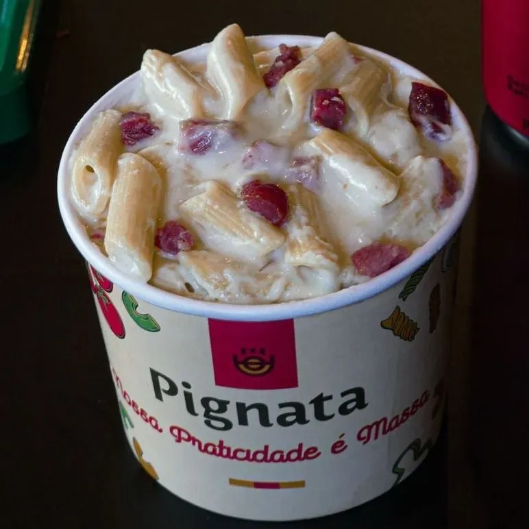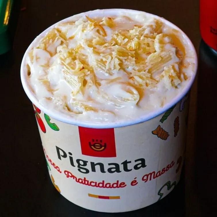 200g de massa italiana a sua escolha molho branco frango em cubos bacon e Catupiry Original.
