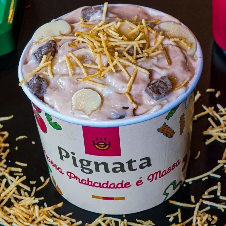 200g de massa Italiana a escolher entre: Spaguetti, Penne, Fusilli, Farfalle e Talharim massa fresca, com molho Strogonoff de Mignon, champignon e batata palha.