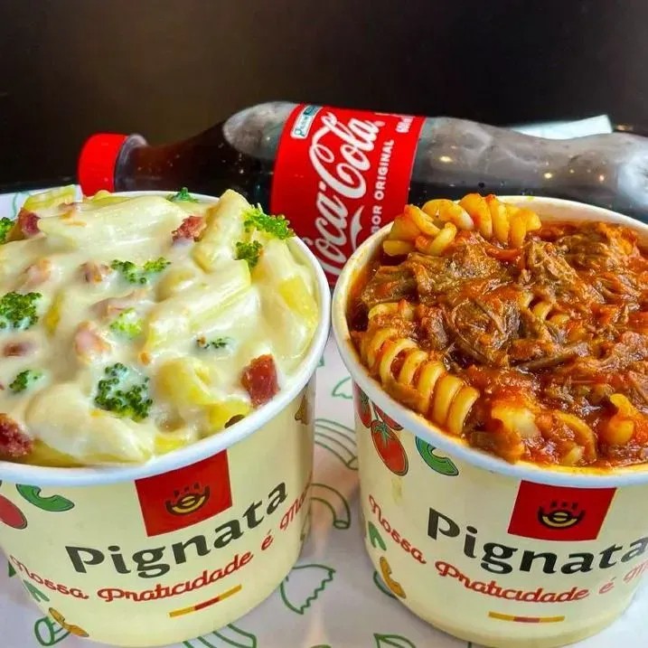 Delicie-se com duas massas irresistíveis, refresque-se com 600 ml de cola gelada.