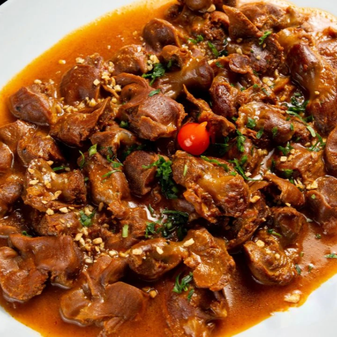A Moela! Amo Ela! O caviar galináceo raiz. Nossa moela é cozida lentamente em molho encorpado secreto do chef, cheio de sabor e nostalgia. Comida caseira de verdade, mata a fome e a saudade. Acompanha arroz branco soltinho, farofa crocante de bacon, salada fresca e amor. Aprox. 500g