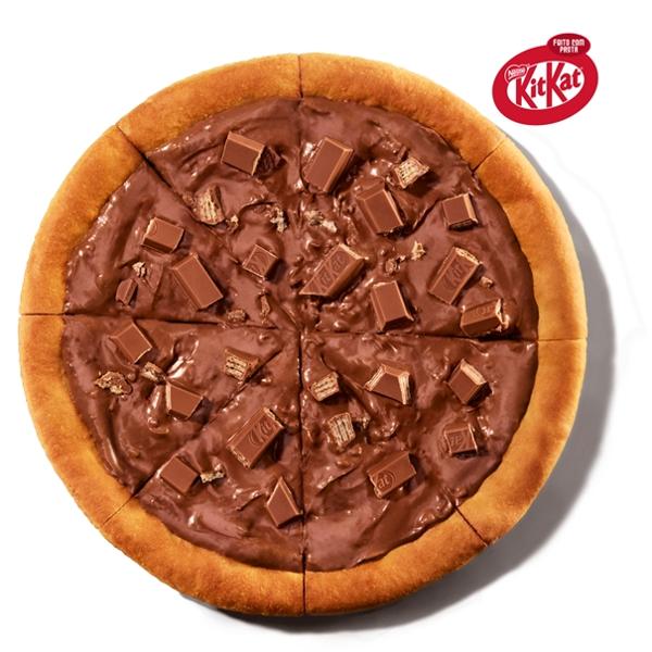 Pizza média com 8 fatias (28cm a 30cm) de massa pan coberta com pasta KitKat® e pedaços de KitKat®. Cremoso e crocante!