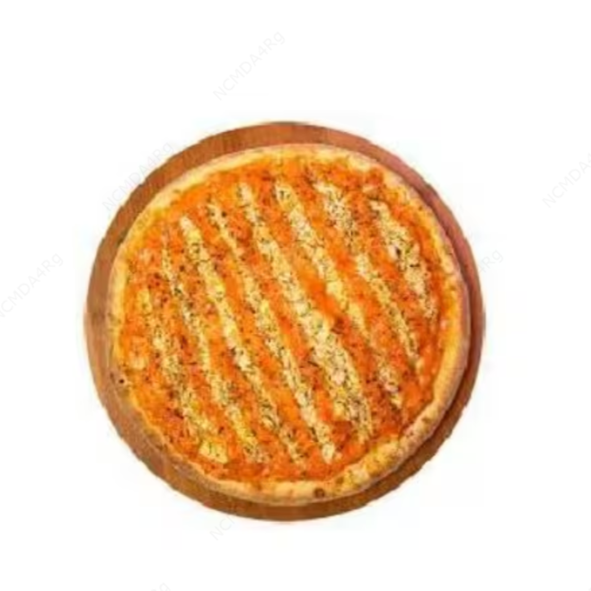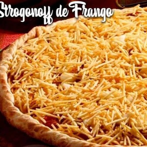 Molho artesanal,mussarela ,frango em cubos,champions molho strogonoffe e batata palha(oregano)