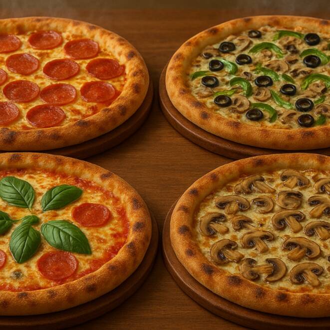 Molho Da Casa, Mussarela, Provolone, Requeijão Cremoso (tipo Catupiry), Parmesão E Orégano.