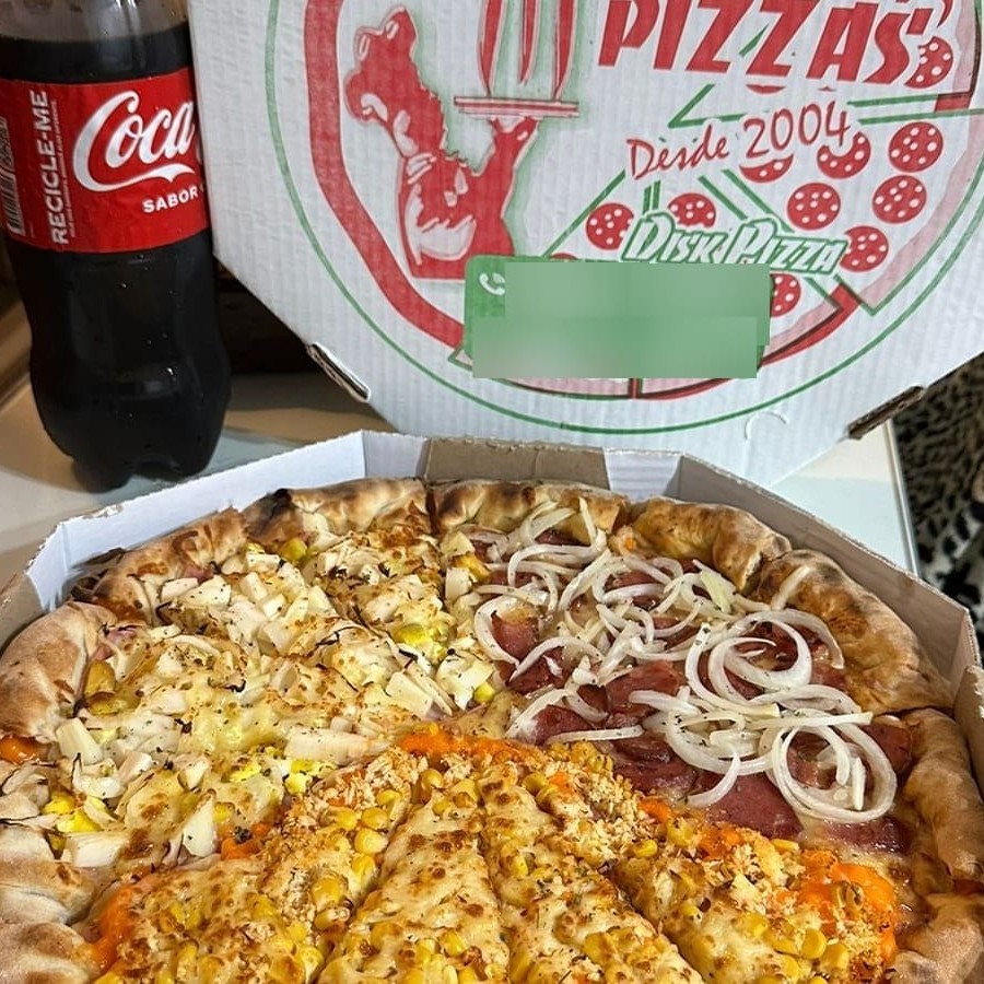 Pizza gigante 16 fatias ate 2 sabores com refrigerante coca cola 2L