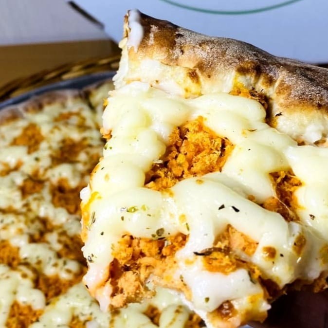 Pizza grande 8 fatias com borda recheada de brinde no sabor de Catupiry e um refrigeranre de sua preferencia