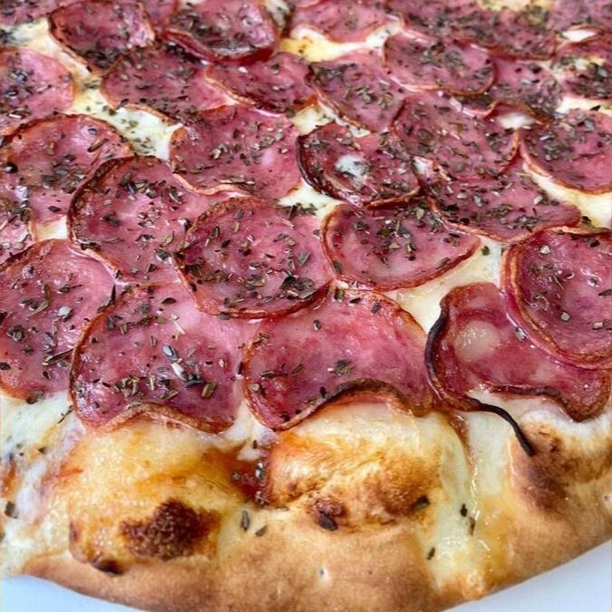 Mussarela, calabresa e orégano