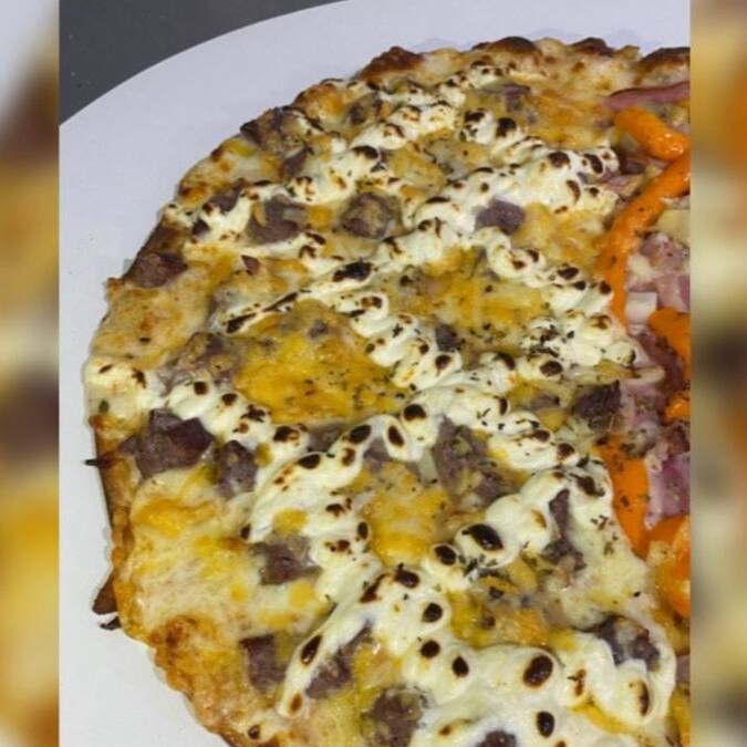 Mussarela, frango com cheddar e orégano
